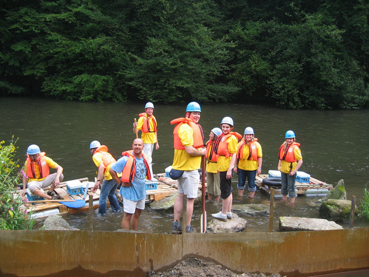 Floßbau und Floßfahrt der Steuerberatungsgesellschaft Hausmann und Partner zur Stärkung des Teamgefühls